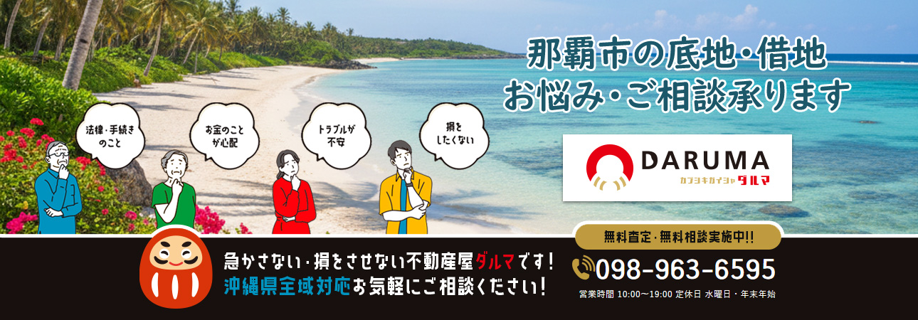 那覇市で底地の不安や悩みを抱える方にとって「まずはダルマに相談すれば大丈夫だ」そう思っていただける存在であり続けられるよう、誠実に取り組んでまいります。 株式会社ダルマ代表取締役 松本貴文