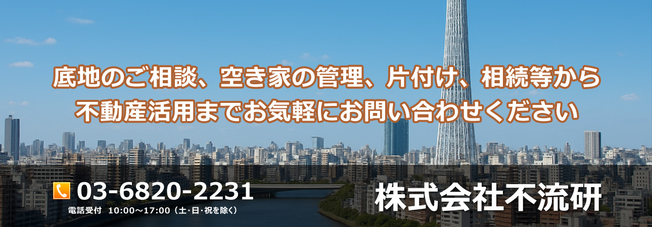 これは私たち株式会社不流研の理念です。 底地や活用困難な土地を抱える皆さまにとって、売却や再活用は簡単ではありません。特に墨田区をはじめとした都市部では、複雑な権利関係が障壁になることも少なくありません。